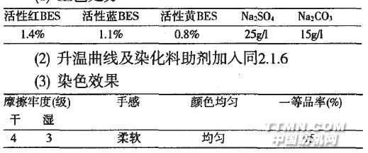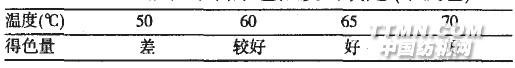 总体效果是活性染料染浅中色效果较好,颜色鲜艳。2.1.2 BES活性染料染色温度的确定(中浅色)