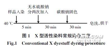 1.2.2 X型活性染料染色X型活性染料常规染色工艺曲线如图1 所示.