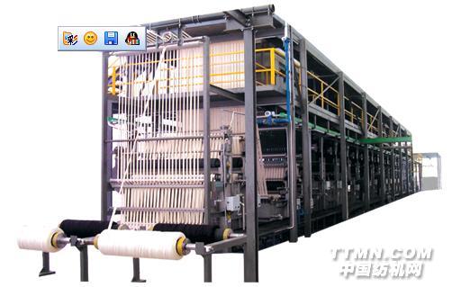 4. 束状染色机: 球经染色也称束状染色,是相对于传统片状的全新牛仔染色工艺流程。束状(绳状)染色机是生产高档牛仔布及彩色牛仔布的高档设备。 主要技术特征: ● 染色效率高,染色速度可达5-36m/min,较一般的染浆联合机高50%以上。染色质量好。色泽、色光透染度均匀一致,色差少,纱束经过分经机分经后,可彻底解决左、中、右之间的色泽差异问题,且色牢靠度高,浆轴质量好。 ● 牛仔布生产工艺为:球经-染色-分经-上浆-织造,对浆纱操作控制非常有利,因此,上浆质量较联合浆染机明显提高。在喷气织机织造时,织机效率平均95%以上。球经染浆织轴较一般的浆染机织轴,布机效率明显提高。下机质量好,操作简单、方便,连续开机无损耗,适合大批量生产。