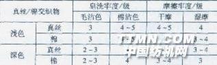 由表5可知,真丝/棉交织物染色后各项牢度较好,且保持了真丝与棉原有的风格。