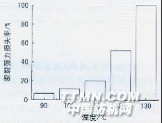 玉米纤维在湿热加工时,温度、pH值和时间都会影响其断裂强力。对不同染色温度下玉米纤维的断裂强力进行的测试(图3)表明,随着染色温度的升高,断裂强力损失率不断增大,110℃后断裂强力损失率明显增大,达到不可接受的程度;130℃的断裂强力损失率几乎为100%。虽然110℃染色的K/S值没有120℃和130℃的大,但前者断裂强力损失明显比后两者小很多,因此将染色温度设定为110℃。