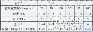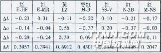 由表2可知,耐氯增进剂Argafix CL在弱酸性条件下对锦纶针织物的固色整理效果不如中性条件下的固色整理效果,特别是在有效氯浓度较高的条件下,中性条件整理织物的耐氯色牢度普遍比弱酸性条件整理的高0.5级。因此,酸性染料染色锦纶织物在进行耐氯增进剂Argafix CL固色整理前必须进行水洗处理,以确保织物呈中性。2.3 固色整理对织物性能的影响2.3.1对色光的影响 色光稳定性是织物染色性能的重要指标,若耐氯增进剂Argafix CL的固色整理破