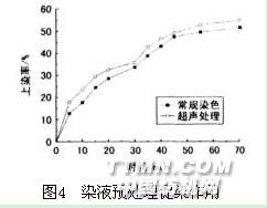 图4中,染液经超声波预处理后,织物上染率增大,这种增大趋势可延长至染色结束, 上染率提高