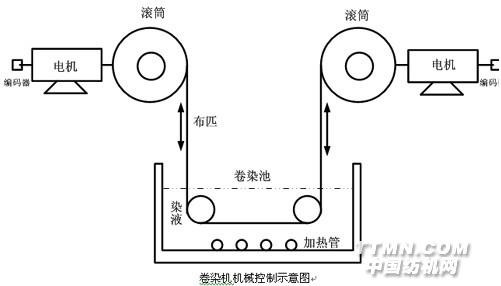 卷染机的控制江苏省无锡市联昌染厂SW1500卷染机机械控制示意图如下: