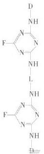 该类染料的连接基以脂肪烃二胺替代芳香二胺, 以氟取代氯,空间障碍影响较小,分子结构平面性受破坏很小,所以直接性很大。这套活性染料在实