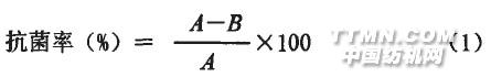 方法织物白度:用WD一5型全自动白度仪测定,将织物折叠成4层,选取不同位置测4次取平均值。纤维表面形态:用扫描电子显微镜(SEM)放大一定倍数观察纤维的纵向表面形态。织物上银含量:将50 mg纳米银整理织物用10 mL浓硝酸(65%)溶解,再用水稀释lO倍。将得到的溶液用电感耦合等离子体原子发射光谱仪测量其在Ag波段(328 nm)上的值,在此基础上计算织物上银的含量。抗菌效果耐洗性:参照《FZ/T 73023---2006抗菌针织品》中附录C的简化洗涤条件及程序,对待测整理织物进行50次标准洗涤。洗涤条件及步骤:用2 g/L标准合成洗涤剂,浴比1:30,水温(40±3)度,投入试样,洗涤5min,然后于常温下用自来水清洗2 min,计为洗涤1次。织物抗菌性能:参照{FZ/T 73023--2006抗菌针织品》中附录D,以振荡法测定织物的抗菌性能。所用菌种为大肠杆菌和金黄色葡萄球菌,试样的抗菌性能以抗菌率表示,按式(1)计算: