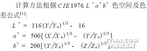 X Y Z 为测试样品的三刺激值, X nY nZ n 为C IE标准照明体照射在完全反射的漫射体上(标准白板) , 经过完全反射漫射体反射到观察者眼中的白色刺激的三刺激值, 本实验采用D65光源10°视角, 查表得X n = 94. 825, Y n = 100. 00, Z n = 107. 381。