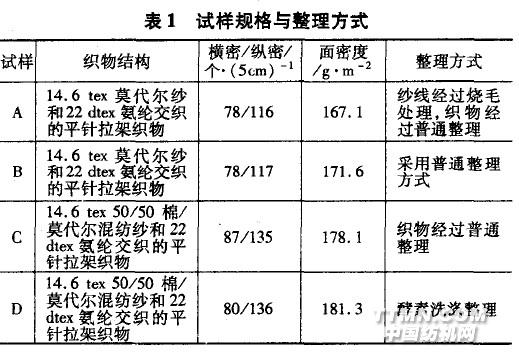 1.2 试验方案为了将织物的起毛和起球过程分开,先用尼龙刷对织物试样进行摩擦,使织物表面产生毛茸,然后将试样与磨料织物进行摩擦起球。对织物而言, 经受摩擦后起球密度,即单位面积内的毛球数评价抗起球性最为合理。但由于毛球大小、形状不确定,故衡量织物起球的主要方法是将起球后的织物与标准样照进行对比,以确定试样的起球程度,国内评级采用五级制,级数越小,起球越严重。为了全面研究织物起毛起球性能,本文采用3种试验方法来对试样的起毛起球性能进行测试和试验。所有测试均在温度28℃、相对湿度80%的条件下进行。方法l:在YG502型织物起毛起球仪上参照GB/T4802-1997进行起毛起球试验,试样先在尼龙刷上磨150转,后在磨料上磨150转,再在标准光源箱内与标准样进行比较,评定起毛起球等级,每种试样测试3次,记录每次试验的测试结果,取综合评价等级作为试样的起毛起球等级。方法2:在YG51 1N型
