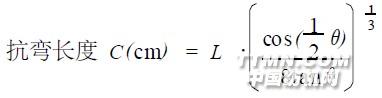 2、3、2 抗弯长度采用斜面法[5 ] ,试条滑出长度L 可由滑板移动的距离得到,由此计算出有关织物的刚柔性指标抗弯长度C。