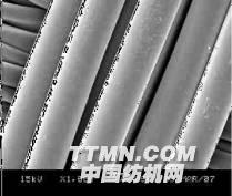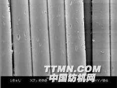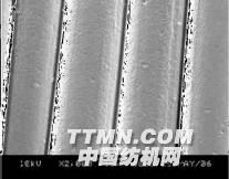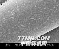 图3 是未经处理的涤纶织物表面电镜照片,织物纤维表面光滑,有少许凹陷处。