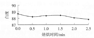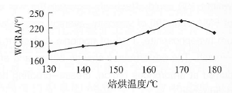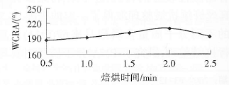 由图5可见,焙烘时间在0.5~2.0min时,WCRA随焙烘时间的延长而增大,在2.0min时,WCRA达到最大值,2.5min时,WCRA已经下降.说明焙烘2.0min时最有利于提高WCRA.