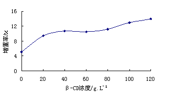 | 图1 CA浓度对织物增重率的影响(β-CD |
