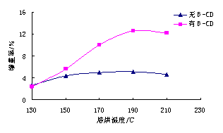 图3可知,未加β-CD时,增重率随着温度的升高先增加后变化不大。CA与纤维素之间的交