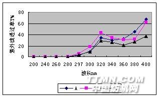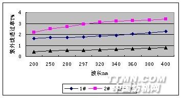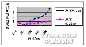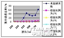 | 纳米粉添加比例% | 不同波长时膜的紫外线透过率T/% | 厚度cm | ||||||||