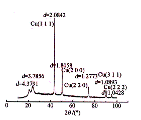 | 图4 电磁屏蔽织物电镀黑镍后的XRD谱图 |