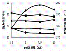 (1)织物的折皱回复角主要是由免烫树脂的用量决定,整理液中加入聚氨酯可以明显改善织物的强力。