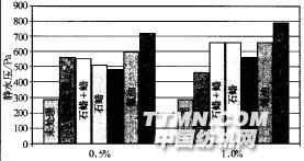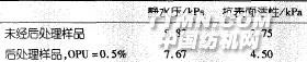 经特殊的抗表面活性处理的非织造材料各项指标值是未处理的1倍多。但在施加油剂的过程中,油剂本身需要具有足够的表面活性来润湿非织造材料,因而上过油的非织造材料样品