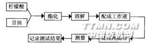 本实验加入甘油的目的是让一个甘油上的羟基与柠檬酸上的不同羧基反应,最好是甘油分子上的每个羟基都与一个柠檬酸分子上的一个羧基反应,尽可能保留柠檬酸上的羧基,一般认为多元羧酸分子上羧基数越多整理效果越好,而合成反应产物的结构与反应物的浓度、反应时间、反应温度有很大的关系。因此,本实验拟采取不同浓度的不同反应时间进行合成,催化剂选用硫酸,反应温度为