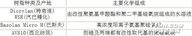 2 实验部分2.1 实验材料、整理助剂及仪器 实验材料:21531纯毛啥味呢,藏蓝色,240 g/m2;21531纯毛啥味呢,米色,210 g/m2 。均由如意毛纺织有限公司提供。 整理助剂:本实验所用的3种型号的有机硅防缩剂见表1;SP-2渗透剂(三角化工厂)。表1 3种有机硅防缩剂的化学组成