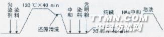 吴绍明,韩文忠,李 芳 亲水性柔软整理可改善纺织品的手感、吸水性和吸汗性,而且织物的传湿和放湿能力也有所提高。目前亲水整理剂按大类可分为聚酯类(包括聚醚型聚酯、磺化聚酯、混合型聚酯),丙烯酸系类,聚胺类,环氧类和聚硅氧烷类等。其中以聚醚型聚酯和聚醚改性有机硅最为普遍。 本公司生产的涤/粘胶/氨纶面料经过亲水整理后,出厂时各项指标均达到客户要求,但经过集装箱海上运输一段时间后,织物干摩擦牢度下降明显,约1~2级。为此,通过模拟海上集装箱运输条件,试验分析织物经不同亲水剂整理后,其摩擦牢度变化的原因,以及不同运输条件对牢度的影响,进而寻求最佳的亲水整理剂。1 试验1.1材料、试剂与仪器 材料 (13 tex×2)×(13 tex×2)+40 d涤/粘胶/氨纶(64/33/3) 染料与助剂 分散黑ECT(江苏吉华集团),分散红S-5BL(杭州百汇化工),分散橙S-4RL(浙江吉华集团),活性黑GWF(浙江凌云化工),匀染剂TF-201E(浙江传化),活性红3BS、活性黄3RS(德司达),柔软剂HSD(亨斯迈纺织染化有限公司),吸湿排汗整理剂ICE-C(鲁道夫化工有限公司),柔软剂CTA(威凯化学品有限公司),柔软剂DP380(德宝化工),吸湿排汗整理剂HP(上海雅运精细化工),亲水性氨基硅油DH(科莱恩),亲水性硅油整理剂TF-405B(浙江传化)。 仪器 红外染色机(杭州三锦科技有限公司),JAl2002电子天平,SEN-SEPER定形机,小样机,TE-RU-HR溢流染色机(台湾亚东机械有限公司),YB(902)BINDER汗渍牢度仪(温州大荣纺织仪器厂)。1.2染色工艺 (1)染色处方 分散黑ECT/%(owf) 2.5 分散红S-5BI/%(owf) 0.1 分散橙S-4RL/%(owf) 0.5 匀染剂TF-201E/(g/L) 0.2