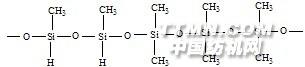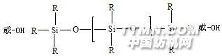 R一般是甲基,端羟基由一定的活性。如果部分甲基用氢原子代替,即为聚氢甲硅氧烷,用于整理,由较高耐洗性,起结构可表示为: