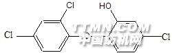 有机苯酚类卫生整理剂 苯酚类化合物具有抗菌活性,其中对氯间甲苯酚和对氯间二甲苯酚具有很活的杀菌性,但是苯酚的气味影响了他们在纺织品上的应用。代表产品:2,4,4ˊ-三氯-2ˊ-羟基二甲苯醚。其化学结构式:.jpg)