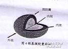 图3 自清洁荷叶效应 通过改变棉纤维的圆柱结构,使之成树干状。纳米技术的使用,将这些树状结构覆盖在纤维表面,为空气在纤维周围创造一个气垫。当织物受到水分的袭击时,在突触上形成水珠,这些水珠挤压着突触空穴中的空气。从技术角度来说,织物具有超疏水性。同时,这些突触也减少了织物与灰尘的接触,灰尘更倾向于水珠接触,并随着水珠的移动而被带走,从而达到自清洁的作用。抗菌整理 众所周知,由于银的抗菌性,当食物或水在银容器中储存时,细菌或微生物的生长就受到达了抑制。现在,银粒子的抗菌性也被科学家们认识到。微胶囊密封的银微粒或纳米颗粒能够固定在有活性聚合物的纤维上,这种方法能够使银的抗菌性达到持久性的整理效果。银基微胶囊的结构如图4所示。