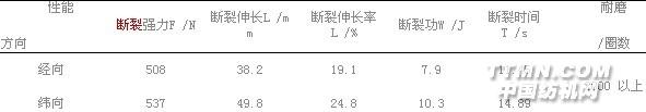 1实验1.1原料(1)试样采用粘胶斜纹布,织物的经纬密度为138×122根/10厘米,克重为221克/平方米,厚度为0.85毫米;性能如表1如示。表1 粘胶织物性能