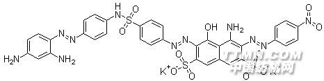 描述弱酸性黑RB(99576-15-5)的制备方法:以4,4′-二氨基苯磺酰替苯胺、H 酸、对硝基苯胺和间苯二胺为原料,首先将4,4′-二氨基苯磺酰替苯胺双重氮化,然后与H 酸偶合,再将对硝基苯胺重氮化,与H 酸进行第二次偶合,暴后与间苯二胺进行第三次偶合得产物。