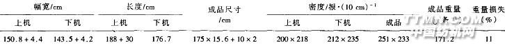 1 生产实践基于纺织印染技术的飞速发展,披肩花色翻新,风情变幻。众多披肩产品中,羊绒披肩因其高雅、华贵,手感滑糯、轻柔、舒适,保温性好等诸多优点而颇受消费者的青睐。研究开发的纯羊绒精纺水波纹披肩,要求产品既轻薄,又保持粗纺围巾的蓬松、柔软、立体感强的特点,对后整理工艺进行了改进和创新,采用精纺粗作的工艺措施。产品庄重高雅,花纹自然清晰,光泽柔和,手感好,集服用性、装饰性于一身,受到市场的欢迎。1.1 原料、纱线规格根据产品风格,以表现羊绒的柔软滑糯、丰满,富有弹性,选择纯羊绒条,羊绒细度16.5μm,长度38mm.选用纱线线密度为17 tex x 2的股纱。在纺纱支数确定的情况下,纱线捻系数的选择直接影响织物的手感、色泽及其加工性能。经试验选择捻度为880捻/m x 480捻/m,捻系数113.6 x 87.6,捻向Z xS,普通绞纱。1.2 产品规格披肩类产品要求质地柔软,所以紧度的选择是关键参数,不宜太大,但也不宜太小,否则会显得松烂,其强力、拉伸性能等内在质量也会受到影响 。根据过去生产实践经验以及本产品的设计特点,确定上机经向充实率为65.8% ,上机纬向充实率为71