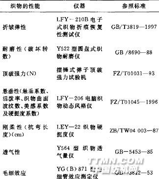 1 实验1.1 实验准备实验材料:羊毛下脚料,氢氧化钠,过氧乙酸试剂,粘合剂;棉针织物:组织结构为1+1罗纹,纵密74根/5 cm,横密56根/5 cm,克重为194 g/m2。整理液的制备:将粘合剂、柔软剂等与在碱性条件下溶解的羊毛蛋白液按一定比例制成整理液。整理过程:采用浸轧法(二浸二轧)将织物在羊毛蛋白溶液中进行整理加工,在100℃ 下烘燥50 min。1.2 测试仪器将经过羊毛蛋白溶液整理和未经整理的棉针织物性能利用相关仪器进行测试。测试的织物性能指标如表1所示。表1 测试的织物性能指标