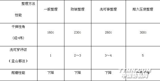 注 由于要求降低织物上游离甲醛含量,耐久压烫整理评级时,干弹性角及洗可穿评级标准都有降低。