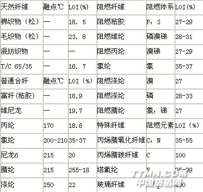天然纤维祗能依靠后处理方法达到阻燃要求,合成纤维则不然,它可以采取与聚氯乙烯混纺,在纺丝液中添加阻燃剂等办法制得阻燃纤维,特别是一些阻燃性能特好的碳素纤维,可用作消防员的特殊服装,现将主要产品列表介绍如下;