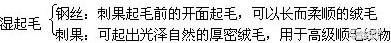 5、影响起毛的因素1.原料方面: 2.毛纱方面:3.织物组织:4.起毛前各工序:5. 起毛时的条件:温度,湿度及PH值。