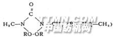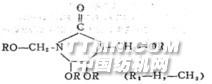 它的反应性能比较低,整理效果比2D差,改进2D树脂即用一元醇或二元醇作醚化剂,得到醚化2D树脂。用这类树脂整理后织物的释放甲醛值大大降低,耐氯性提高[5]。这类产品已经作为商品用于棉及其混纺织物的树脂整理。如西德BASF公司的Fixapret COC、Fixapret 2348,美国Cyanamids公司的Aerotex Reactant 24、Aerotex Reactant 25等。甲醚化2D通常表示为;