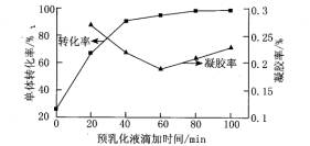 | 图2-3预乳化液滴加时间对聚合的影响 |