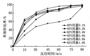 <!--[if !supportLists]-->(1) <!--[endif]-->KPS用量对单体转化率的影响