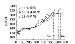 c、催化剂为98%磷酸的温度/时间曲线:用此催化剂聚合反应时间相对最长,98%磷酸为固体,不仅制造成本高,加入到反应体系巾相对于85%溶液磷酸分散会稍难,而且容易导致局部催化产生不必要的副反应,还有98%磷酸为固体,易吸潮不容易存放。从表3可以看出,用98%磷酸制备出来的聚酯基黏度很低,产品外观为淡黄色,这样容易在后整理液中引入颜色,且出水量15m1跟理论值(21.6 ml)相差较大,所以98%的磷酸在此聚合中也不是理想的催化剂。