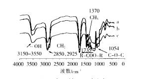 我们用三组(a,b,c)工艺相同的,酸值羟值都 达到要求的聚酯进行了红外分析,结果见图2,
