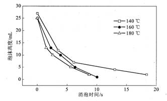 | 图1 硅膏的不同合成温度对JUC消泡剂消泡性能的影响 |
