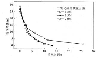| 图2 ⒏O2的质量分数对JUC消泡剂消泡性能的影响 |