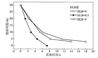 | 图3 不同HLB值的乳化剂对JUC消泡剂的影响 |
