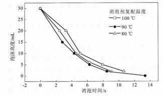 | 图4 消泡剂的复配温度对JUC消泡剂消泡性能的影响 |