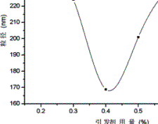 | 图3 引发剂的用量对单体转化率的影响 | 图4 引发剂用量对乳胶粒径的影响 |