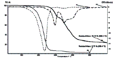 | 图1为产物1和2的TG和DTG曲线。 |