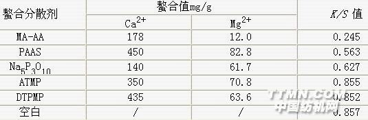 一.活性染料染色后用的防沾色皂洗剂 主要是去除未固着的染料和水解染料。目前,配制活性染料染色后用的防沾色皂洗剂原料大都是:⑴无机盐类;⑵聚丙烯酸类;⑶有机磷酸酯类;⑷高分子聚合物;⑸表面活性剂类;(活性防沾色皂洗剂都为阴离子型) 实践证明:螯合分散剂能在活性染料染色后的皂洗剂中起到防沾色作用。下表是5只螯合分散剂对Ca2+、Mg2+的螯合值和防沾色效果(k/S值)。