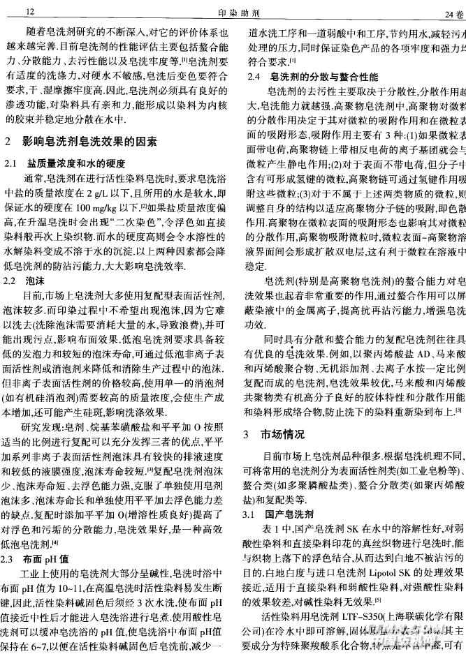 活性染料染色用皂洗剂概述