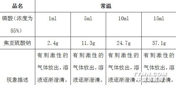 3、结论通过试验可知,配制马骝水时加入1ml磷酸在过水的时候最多加入2.4克的焦亚硫酸钠可以完全反应。