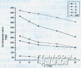 图5各助剂在98℃不同时间下钙分散值