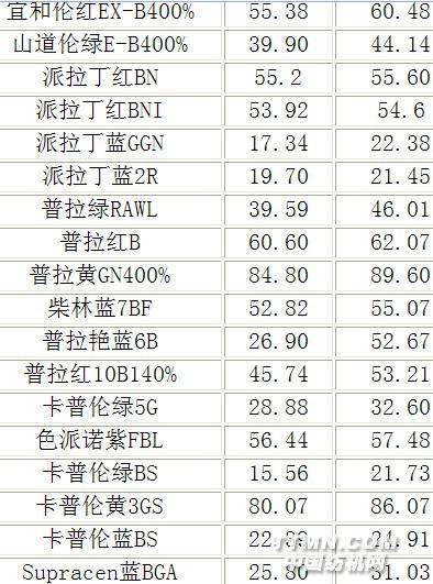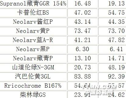 武达机7 结论 选用非离子表面活性剂、水溶性高分子化合物、含氮阳离子木质素、烷基醇醚膦酸酯钾等助剂复配,对国产染料进行改性,可获得在色牢度、鲜艳度、溶解度等方面协同增效,大多数可替代进口同类商品,也可使某些进口染料的尖染夹花现象和鲜艳度方面获得改善和提高。染料性能提高的根本解决方法,固然应该以制造工艺为主,但在染色中选用合适的复配助剂,无论对改进质量和提高经济效益,都是十分可取的,本文在这方面的探索仅是一个开端。 附表是粗纺女式呢(501)上,应用复配助剂后鲜艳度C的提高数据(见表2、表3)。表2 复配助剂对国产染料鲜艳度的影响.jpg)